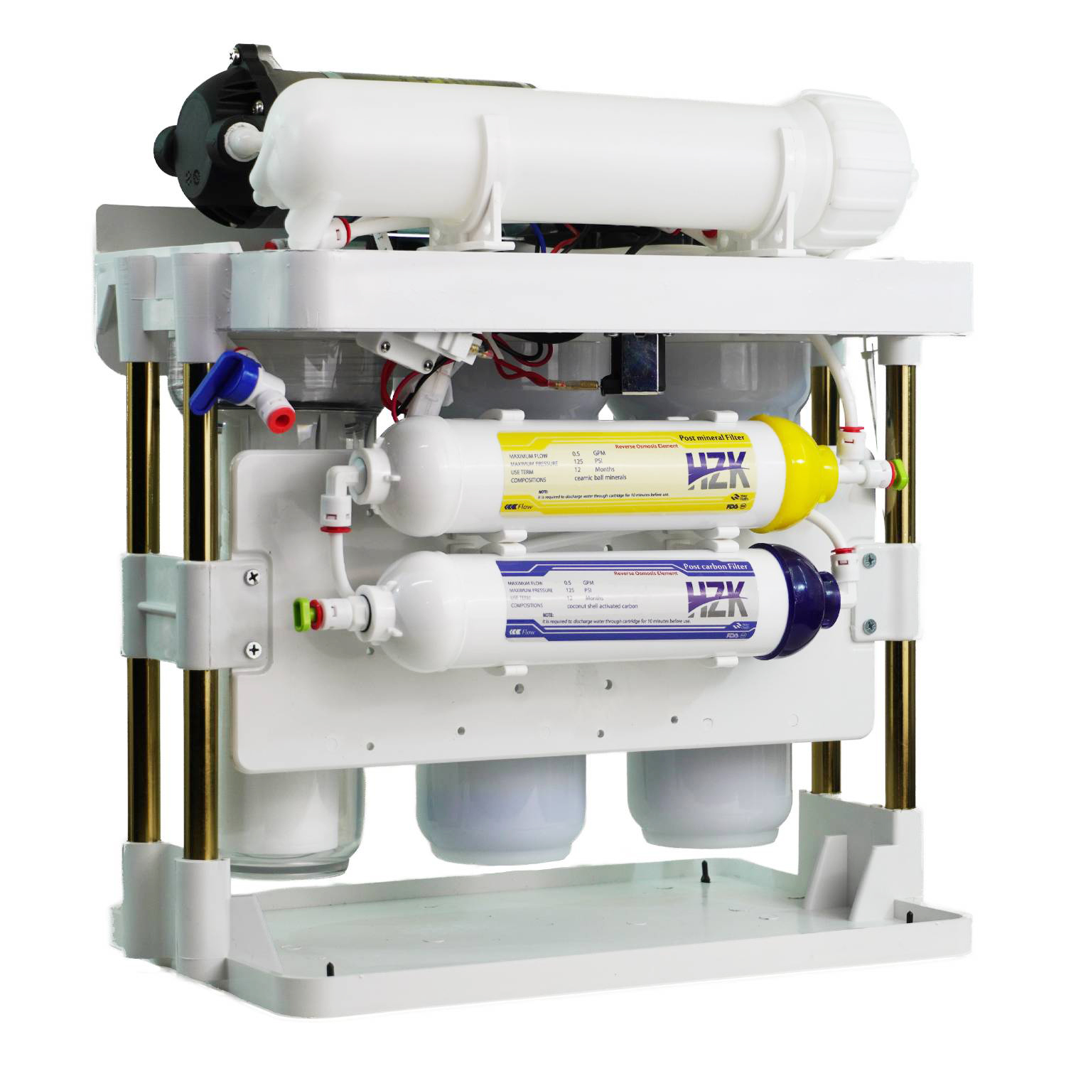 دارا بودن هوزینگ باکیفیت، اتصالات وارداتی ، فیلترهای کربن گیاهی پسته، مخزن 4 گالن HZK ، شیر ستاره ، ممبران 11 لایه و براکت منحصربفرد HZK از نقاط قوت این دستگاه میباشد.