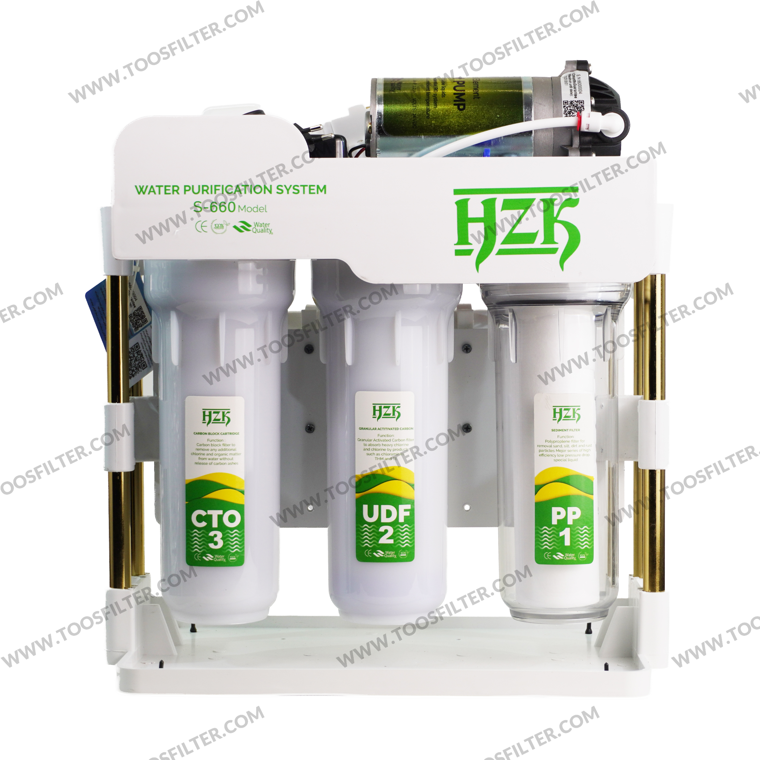 دستگاه تصفیه آب خانگی HZK مدل S660 یک محصول با کیفیت با طراحی جذاب است که آب مصرفی را طی 6 مرحله فیلتر می کند و آب تصفیه شده و با کیفیتی را در اختیار مصرف کننده قرار می دهد.